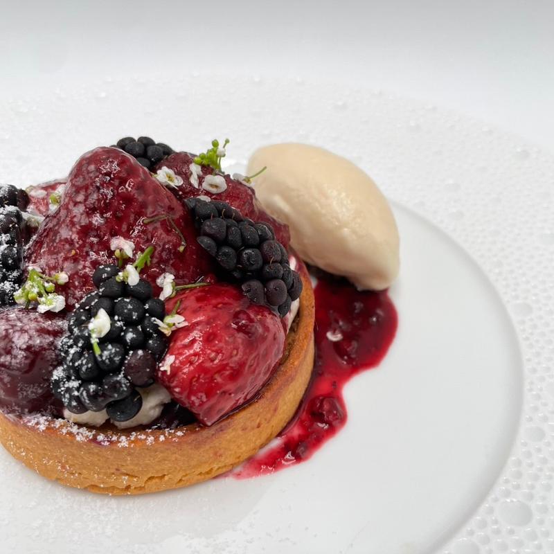 Mixed Berry Tart Served with Meringue Gelato