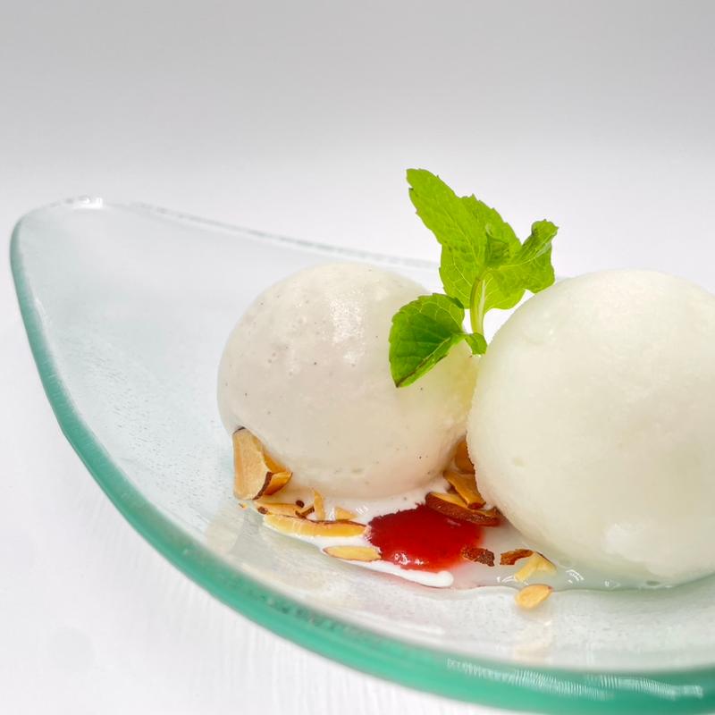 Baba au Rhum with Orange Sauce and Vanilla Ice Cream