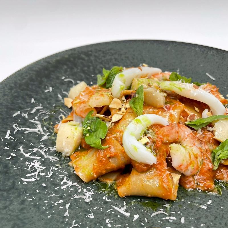 Seafood Ravioli and Chicken Agnolotti in Bisque Sauce